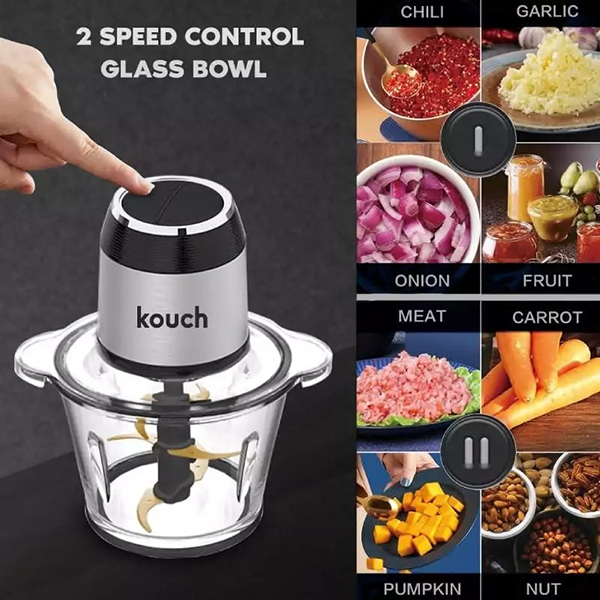 همانطور که از نام محصول پیدا است، خرد کن دو کاسه کوخ مدل KC-2044 دارای دو کاسه با جنس‌های مختلف، پیرکس و استیل است. ظرفیت هر دو دیگ مساوی و برابر سه لیتر است. نوع کارکرد دستگاه به صورت دکمه‌ای است و شما می‌توانید با توجه به نیاز خود یکی از دو مدل سرعت تیغه‌ها را روشن کنید (دورتند یا دور کند). با این غذا ساز شما می‌توانید هر نوع خوراکی‌ را با کمترین زمان ممکن خرد کنید (از مرغ گرفته تا سبزیجات). رنگ غالب محصول معرفی شده نقره‌ای انتخاب شده تا با تمام تجهیزات اشپزخانه ست شود البته رنگ مشکی نیز در این کالا استفاده شده است و در کل ترکیب رنگ زیبا و شکیلی دارد.با غذاساز و خرد کن کوخ مدل KC-2044 می‌توان مرغ و گوشت را خرد و از ان برای درست کردن کوکو، اسنک و کوبیده مرغ یا گوشت استفاده کرد. پوره کردن گوجه برای درست کردن رب یا چاشنی‌ غذاهایی مثل استامبولی از دیگر کارکردهای این غذاساز است. خرد کرد انواع سبزیجات ساده‌ترین و سریع‌ترین عملکرد محصول نامبرده است.
