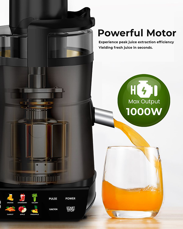 ظرفیت مخزن تفاله این محصول نیز 2 لیتر بوده که این امکان را برای شما فراهم می کند تا 10 سیب یا بسیاری از میوه ها و سبزیجات دیگر به به طور همزمان آب کنید. همچنین دارای یک پارچ 1 لیتری برای آب میوه است.