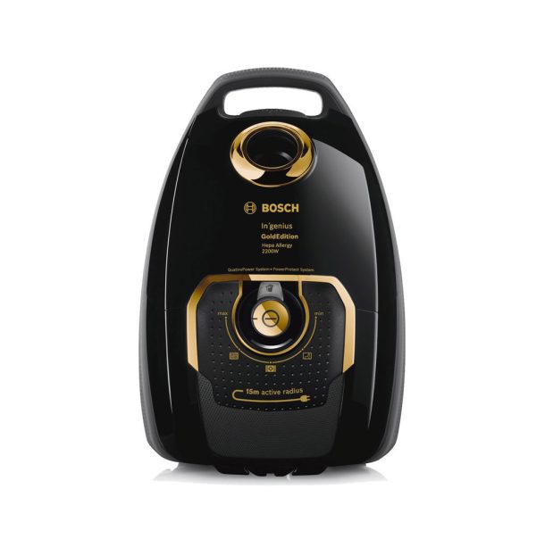 موتور جاروبرقی BGL8GOLDIR بوش بسیار قدرتمند و کم صدا می‌باشد و توان مصرفی آن 2200 وات است. تکنولوژیIn ‘genius Gold Edition که در این جاروبرقی تعبیه شده، یک تمیزی فوق‌العاده را برای شما به ارمغان می‌آورد. سیستم Power Protect طراحی شده توسط شرکت سازنده با60 درصد قدرت مکش بیشتر باعث می‌شود تا با جریان هوای عالی، برای عملکرد تمیز کردن، شما جاروکشی پرقدرتی را داشته باشید، همچنین وجود این سیستم باعث افزایش مکش جاروبرقی در زمان نیمه پر بودن کیسه می گردد. سیستم Quattro Power عملکرد بسیار عالی در مکش دارد که باعث نتایج عالی در جارو کردن با مصرف انرژی کمتری می‌شود. این جاروبرقی دارای موتور کمپرسور HiSpin با تیغه های ایرودینامیک و کاملا کالیبره یکی از کم مصرف ترین جاروهای موجود در بازار است. فیلتر این جاروبرقی هپا (HEPA) می‌باشد که با ویژگی بالا برای عملکرد بهتر، تمام گرد و غبار را به خوبی به خود جذب می کند و مانع از پخش شدن در محیط می‌شوند و هوای خروجی 99 درصد بدون ذرات آلرژی‌زا هستند.